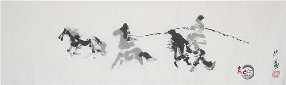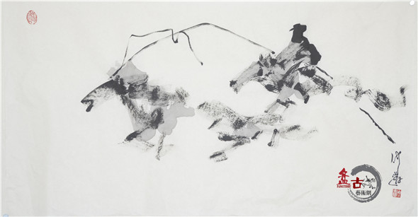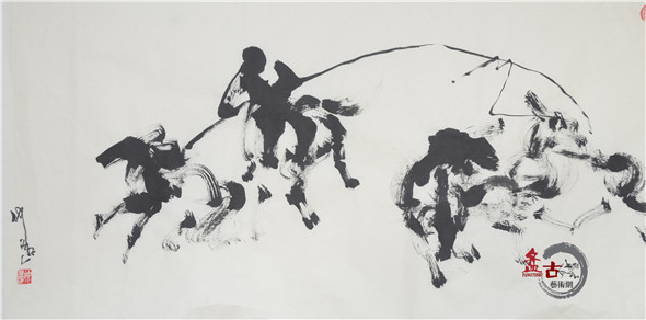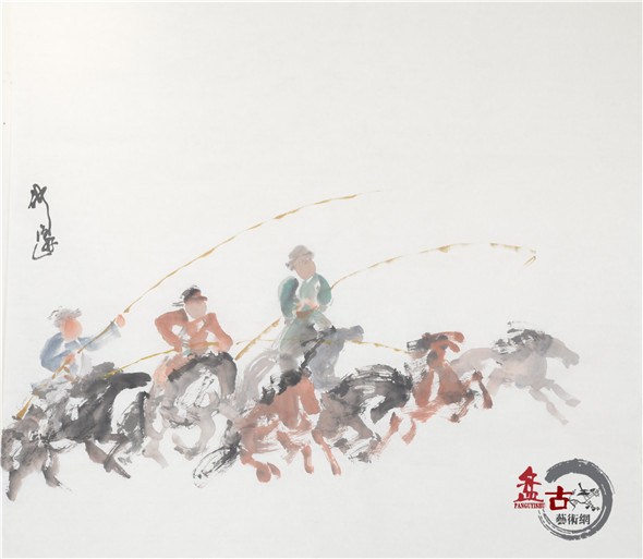 【盤古藝術網】藝術家仲泊游多年來數次往返于草原,深入牧區、體驗生活,把在草原之所見記于心中;速寫于筆下,帶著濃濃的草原之情,用畫筆記錄著這片大草原上的牧民生活場景。近日,小編獲得仲泊游最新創意的草原速記系列作品,本篇為“套野馬”,分享給廣大書畫愛好者。