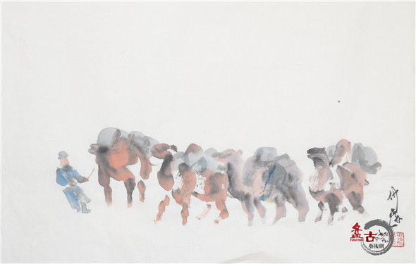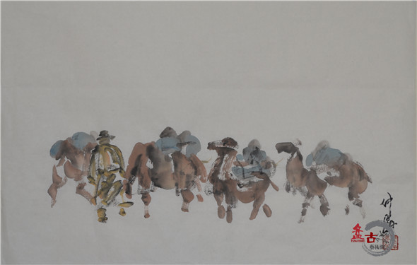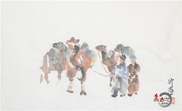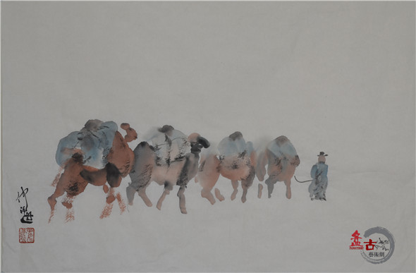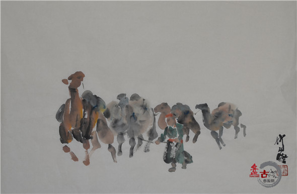 【盤古藝術網】藝術家仲泊游多年來數次往返于草原,深入牧區、體驗生活,把在草原之所見記于心中,速寫于筆下,帶著濃濃的草原之情,用畫筆記錄著這片大草原上的牧民生活場景。近日,小編獲得仲泊游最新創意的草原速記系列作品,以下作品為“耐勞的駱駝”,分享給廣大書畫愛好者。